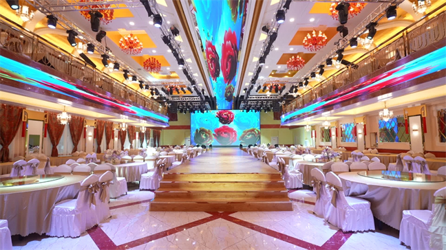 皇宮廳—金碧輝煌、皇宮式裝修,面積1038㎡,層高8.6米,配備愛情階梯、軌道威亞、二層觀禮臺(tái)、浪漫燈光秀、旋轉(zhuǎn)升降舞臺(tái)、頭頂天幕連接開合大屏。可承接50桌的大型宴會(huì),也可舉辦600人的大型會(huì)議;還可用作會(huì)展、車展場(chǎng)地,每逢節(jié)假日還為市民上演文藝節(jié)目。